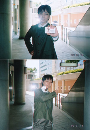 「変身!!」 ・・・ちょうどこの頃龍騎熱が高くてね(笑) 手に持ってるのは名刺です ちなみにガラス越し(恥) 誰の変身ポーズかわかったそこのあなた! 実はライダーですね?(笑) |