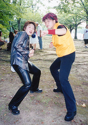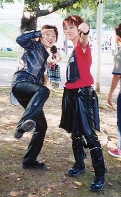 進化論ツアーコスです☆ すっげー暑かったです!! せっちゃんは特に地獄を味わいました 通気性激悪なマテリアル仕立ての服・・・ でも野外最高v |